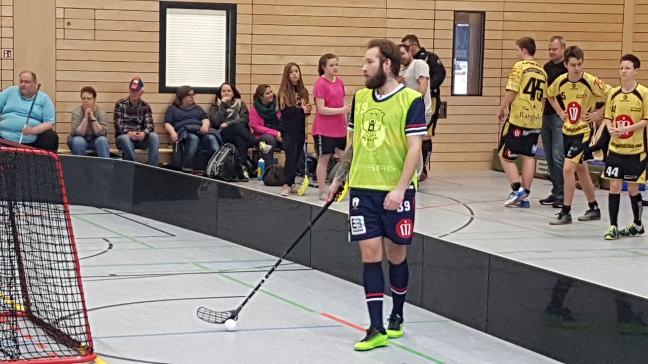 Im 2. Spiel des Tages ging es dann gegen die 2. vom SCS, wo man im Hinspiel eine blöde 8:9 Niederlage kassiert hatte. Da es auch gleichzeitig das letzte Spiel für die Eisbären in der Vorrunde der Liga war, man jedes Team bisher im 2. Spiel geschlagen hatte und man die Punkte für die Playoff-Teilnahme unbedingt brauchte, ging es auch hier noch mal sehr konzentriert in das Spiel. Diesmal dauerte es bis zur 5. Spielminute – zuvor wurden aber schon etliche Chancen liegengelassen – bis es Chris Otte vorbehalten war das erste Tor und seinen ersten Saisontreffer zu erzielen. Da Toreschießen ja nicht unbedingt seine Kernaufgabe als Verteidiger ist, freute er sich um so mehr. Dann gab es aber auch nur 1,5 Minuten später den Anschlußtreffer, genau in einer Phase, in der die Eisbären zu nachlässig agierten. Der war dann aber auch noch mal ein kleiner Weckruf. Zwar konnte das Team eine Strafe des Gegners kurz darauf noch nicht nutzen, allerdings hatte man das Spiel wieder mehr unter Kontrolle und machte viel Druck auf das Tor vom SCS II. In der 12. Spielminute war es dann Robbi Haschker der sich den Ball hinter dem eigenen Tor schnappte, über das ganze Feld lief und trocken halbhoch zum 1:2 traf. Eine Strafe gegen Wilhelm überstand das Team schadlos und Milde schraubte das Ergebnis in der 14 Minute zum 1:3 Pausenstand.